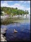 The bike took a rest today after the seven days of riding. I was up early and decided to explore the area on foot. We arrived late the previous night and had no idea what was nearby. Unexpectedly, there was a sidewalk that runs through town along Route 28. There were even a few people out for a morning walk in this town of a few hundred people. The summer season is nearly over and some stores are closed till spring. There are still tourists braving the cool temperatures to catch an early glimpse of the turning leaves.