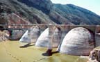 Century day. At least for most of us it was a day to ride 100 miles. For some, like Cyndi, Jimmy, Lynne, and Suzanne, it was their first 100-mile day, and not a very easy one at that. We left camp at Globe early as it would be a long day. I left earlier than usual, in part because someone had to ride ahead to check out the route. At the Coolidge Dam turnoff from US 70, the road was supposed to be very rough, and we decided if it was too rough, we would stay on route 70 and just ride 75 or so miles. The road seemed OK, so those who wanted to do the century went ahead. Tod, Bob, and Spike decided to do the shorter route along 70. JimN was delayed, so Oliver and I waited for him at a nearby gas station. He had a flat and brake trouble, and was delayed for about 40 minutes. While stopped he met Mike, a solo rider from England doing our same route. Mike decided to ride with us for a few days with JimN's permission.