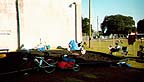 The day started early when I heard Jimmy's alarm at 4am. He and Jim left at 5:30 to get to Quincy before the post office closed. I managed to sleep in until 5:30 and got up to prepare breakfast and lunch foods for the group. Oliver and Bruno took a while to roll out of their tents after their late night adventure. Oliver wanted to see a real football game so they went to the high school homecoming game, riding their bikes in the dark to the park entrance then walking a mile to the stadium. Oliver's comment was that it was hard to see the ball, being accustomed to watching soccer matches where it is always visible as opposed to football where the object is to hide it as long as possible.
