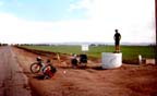 After the dunes we stopped at the one water stop, a store in Glamis, named after the castle in Glamis, Scotland, by Scottish surveyors. My ancestors emigrated from this town to come to America. Water was $3.25/gal, but we weren't complaing (too much). It was another 30 or so miles to Palo Verde through scrub desert, passing the dark brown Chocolate Mountains. I rode that stretch alone, stopping occasionally to savor the silence, or to check out treasures along the roadside; a nice pair of levis, a 1/2" wrench, a small mirror, and many nuts and bolts. I kept the mirror for some reason. Palo Verde is a very small town, and we're at the Tamerisk Trailer Park under the tamerisk trees (that I hear are a noxious imported tree that tends to suck up excessive amounts of precious ground water) along a tributary to the Colorado River which is 2 miles away. Tomorrow is a short day of 2 miles to Blythe where we stay at the home of a friend of JimN.