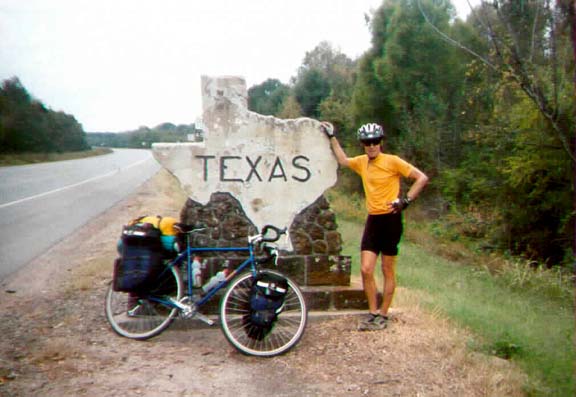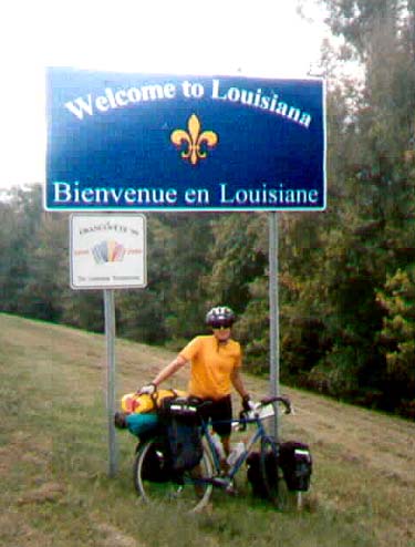 We made it to Louisiana. After 3 weeks of riding through Texas, today we crossed the Sabine River and entered Louisiana, and almost immediately it started raining. Well, actually it just barely sprinkled, but we thought it was a sign of things to come. We've been so lucky by not having to ride in any rain to speak of on the entire trip to this point, so I think we are due for some, and as I sit in front of my motel room here in DeRidder, the wind is blowing and the temperature has dropped at least 10 degrees in the last few minutes, so I think we will have some rain tonight. At least I hope it rains tonight while we are treating ourselves to another motel. Then we can think that it was worth the extra money, although there appear to be no campgrounds in this area anyway.