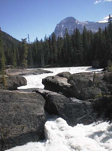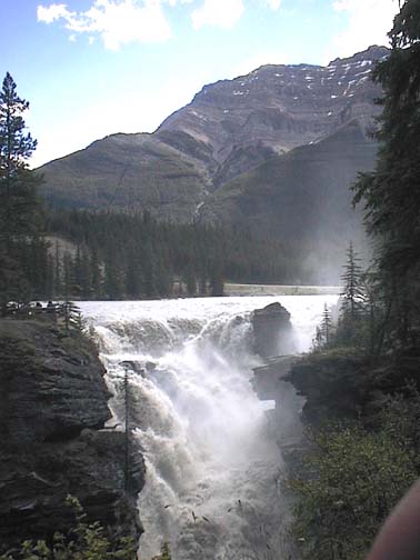 We had a decent room at Sunwapta Falls, another of the tourist islands in the center of the park, a short walk from another set of falls cut into the bedrock by the Athabasca River. While surfing channels in the lodge we happened across a show on dog agility and saw Kerie's sister Linda and one of her border collies win her event. Others at dinner were talking about the event and Kerie told them about the world class athletes in the family.