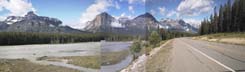 It wasn't long before we turned off onto the Bow Parkway, Rt. 1A, which also had a shoulder and the traffic was much calmer. Immediately after turning we came across a herd of bighorn sheep coming out of the woods, their coats looking very mottled since they were in the process of shedding.