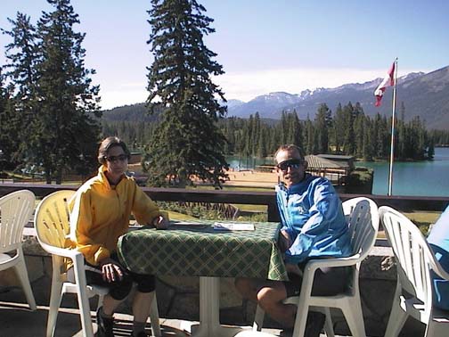 I went part way up the very steep climb to Mt. Edith Cavell just before we rejoined Rt 93 on the outskirts of Jasper. Jasper is a lively mountain town with many outfitter shops, geared more toward hikers and bikers than the motor tourists who frequent Banff. We stayed at the Tonquin Inn on the east edge of town, next to a huge apartment complex where the summer and restaurant, shop and motel staff live. We had a very good dinner at the Mad River Inn.