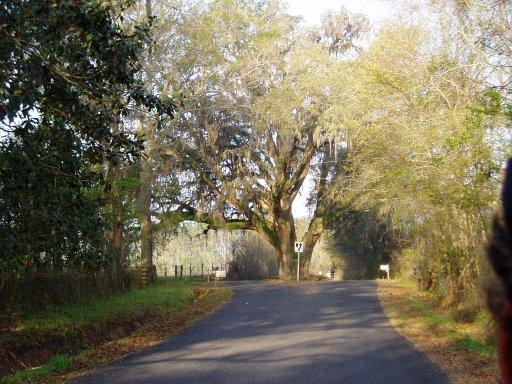 The tour was billed as "Red Hills to the Sea", and calling the rolling terrain "hills" was stretching the term a bit. The early part of the ride to Quincy, north of Tallahassee, was rolling and we got a workout on some of the climbs. There were some scenic roads along the way, what are referred to as "canopy roads" where the live oak branches, like the one above in the middle of the road, arch over the road forming a canopy.
