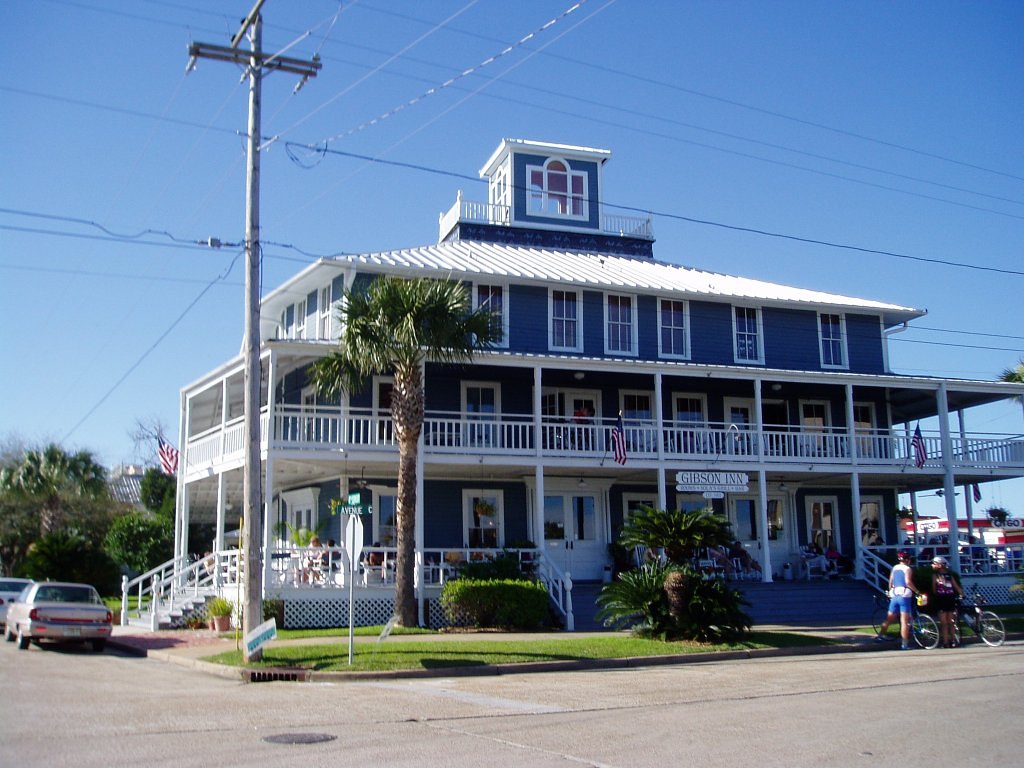 We made it to Apalachicola without mishap. Our digs for the night, the Gibson Inn, a lovely old Victorian hotel, was located at the base of the bridge so we wheeled up to the front entrance and checked in. We were lucky and found a sheltered place for the tandem on the covered porch near our room.