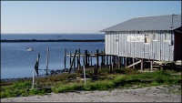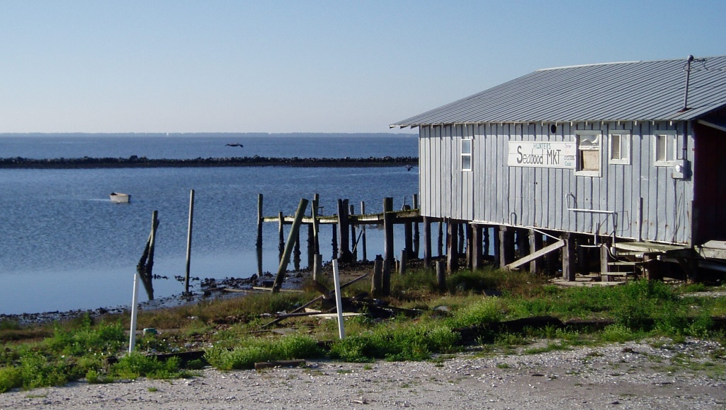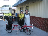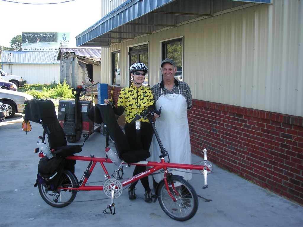 We stopped several times to take pictures as we rode on US 98 along the coast. As we were taking pictures of the fishermen at one spot, a curious oyster shucker saw us in front of his shop and he came out to ask about our odd looking bike. It was a very pleasant ride, probably the best of the trip.