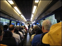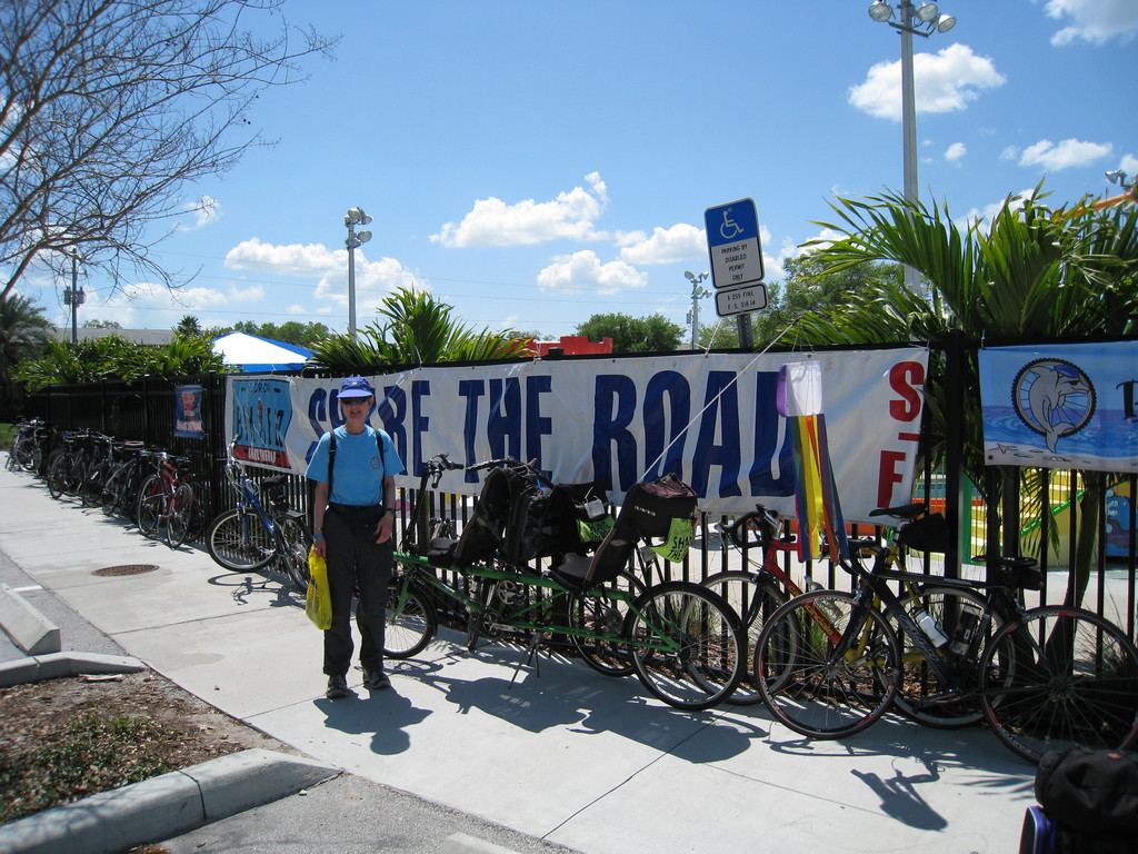 At the park we made peanut butter and jelly sandwiches for the road and settled in for the 2+ hour bus trip back to Clearwater, thankful that we didn't have to wait in line to have our tandem packed in a truck. The trip was uneventful, most people talking to their seatmates, Kerie and I listening to our music players and reading.