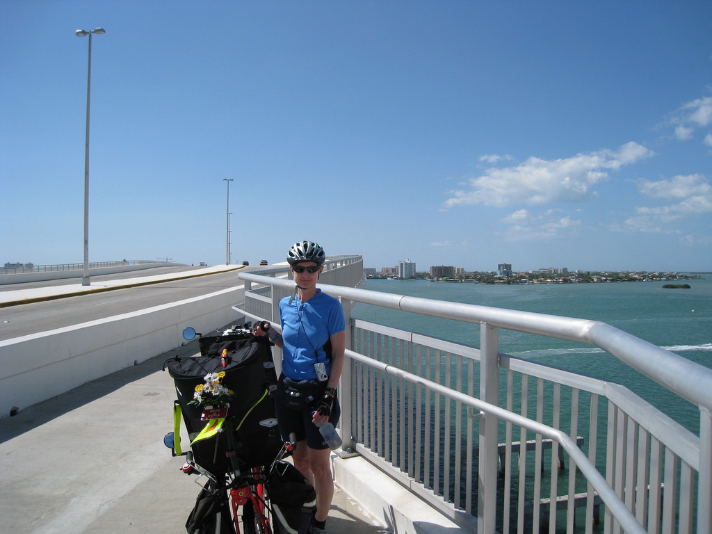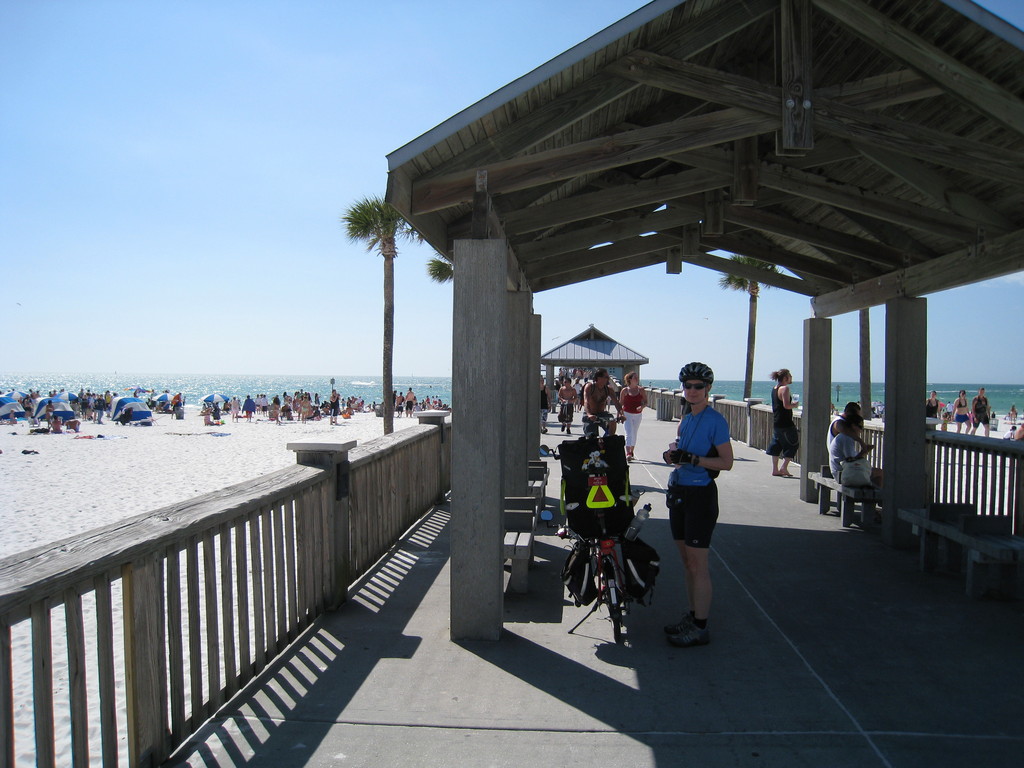 We lingered for a while at Clearwater Beach, walking out onto the long pier to people watch. The Clearwater Bridge was the first climb of the day, and the second was the Sand Key Bridge. We chose to ride on the wide bridge shoulder instead of the sidewalk and had no problems. The beach at Sand Key was less crowded.