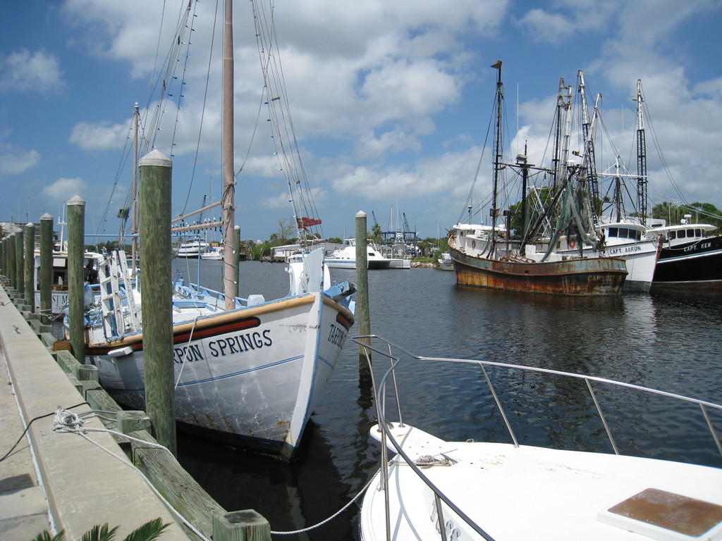 In Tarpon Springs we found an uncrowded Greek restaurant (there are no others) and split a vegetarian gyro and a baklava that we ate on a bench next to the water. The tourist ships were doing a good business giving rides to demonstrate how sponges are harvested. Years ago Dad and I did the same. We took a few photos and headed back. On the way we stopped in Dunedin for a smoothie and to walk around the town where several art and gift shops are located adjacent to the trail.