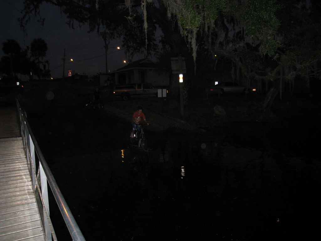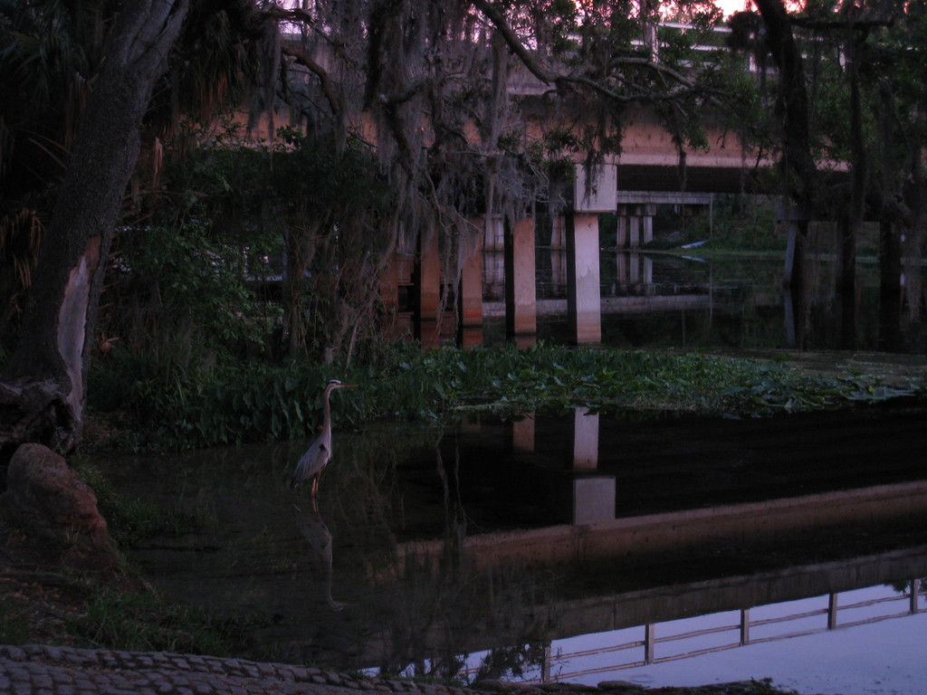 We walked around the springs for a while and caught the shuttle back to town. The Withlacoochee River was near our motel and we took an evening stroll down to the river where a Great Blue Heron floated down and landed on the boat ramp next to us. Definitely an urban bird. Another heron was nearby. We watched them for a while until two youths on 20" wheel bikes rode down the ramp right into the water, screaming in delight. We laughed and took photos as they did it a couple of times then rode off into the night.