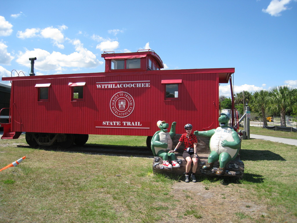 The Withlacoochee Trails is our favorite so far. It is very wide, with few markings on the trail such as a center strip or separation of cyclists and pedestrians. It seems to work better than trails where there is too much separation. It's a scenic trail and passes near some real places. Granted this is still the interior part of Florida and there are limited sights, but the stretch in Inverness is adjacent to several lakes with boardwalks and trails widing through a city park. Many local people were out on the trail.
