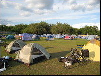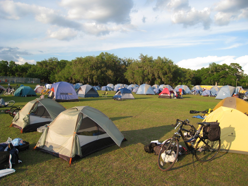 We returned to the trail to ride to tent city at Inverness Middle School to check out the Trail Level of Service study and see what was going on, which turned out not to be much. Since we didn't ride the century and had made good time, we were far ahead of the main pack of riders. Volunteers were just getting to the school and headquarters was not set up yet nor was the trail study group. We had time to ride back to the room, shower and change clothes, then return to the school for a good dinner. It was difficult to talk to our neighbors over the big band jazz playing. We did dance briefly before returning to the motel.