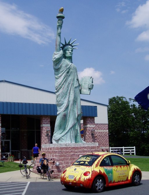 We locked up our bikes in the tennis court and waited for the shuttle. Since the accommodations were so spread out, with people staying as far north as Woodstock, about 10 miles away, and as far as Harrisonburg, 10 miles to the south, there were several bus routes. Bike VA usually does a great job of providing shuttle buses from Tent City to all official motels, the downtown area when there is one, and to local attractions. Today was the exception. People had been waiting for 40 minutes for the motel bus and the crowd was getting rowdy. Then the ride to our motel in Woodstock took another 30 minutes. We were pretty grouchy by the time we arrived, to wait in yet another line to check in.