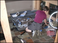 Our room wasn't ready so we packed up Kerie's bike in the lobby, eliciting the usual stares from passersby. It took about an hour and 20 minutes to disassemble the bike, wrap it in insulating material, and then fit it into the bike box like a puzzle, using photos from previous attempts as reference. Before packing my Bike Friday I went for a short ride and then we took the motel shuttle into town for dinner at Mama Blanca's, a Latin American restaurant. The spicy shrimp was spicy and good. The Tres Leches desert that we split was huge and we stuffed ourselves for the last time on this trip.