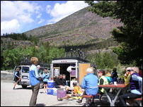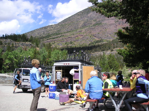 | Lunch at Sun Point | Descent after lunch | Bruce at St. Mary Lake |