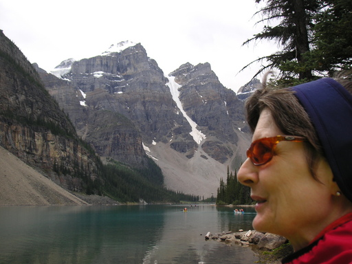 As usual, the "rest day" in Lake Louise involved riding about 30 miles. That's why we now call them layover days, since there is usually some physical activity involved for most of us. The main group hiked from Lake Louise to the first tea house, a 6 mile round trip. Some stayed at the lodge, one couple caught a bus to Banff and spent the day, others rode. Kerie and I chose to get a late start and ride up to Moraine Lake.