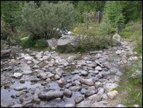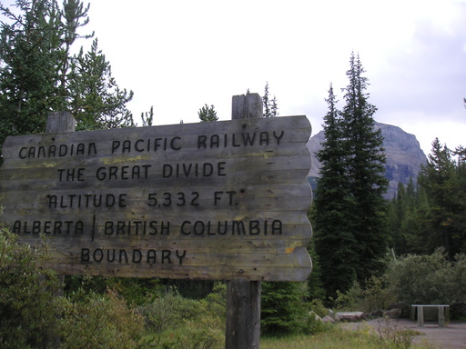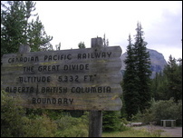 Being a bit tired, we were wondering about our decision to repeat this ride which we had done in 2000, since there was a steady descent to the great divide, where waters from a stream split at the British Columbia/Albert border. One stream flows to the Pacific, the other to the Atlantic. After a very brief visit to BC (5 minutes) we headed back uphill toward the main road and our hotel.