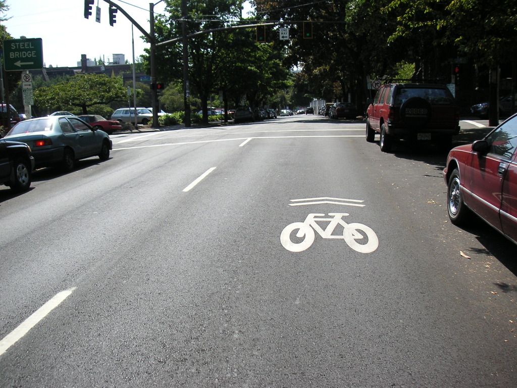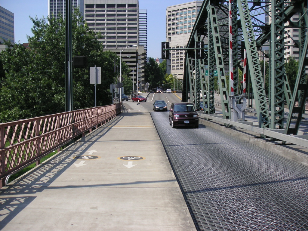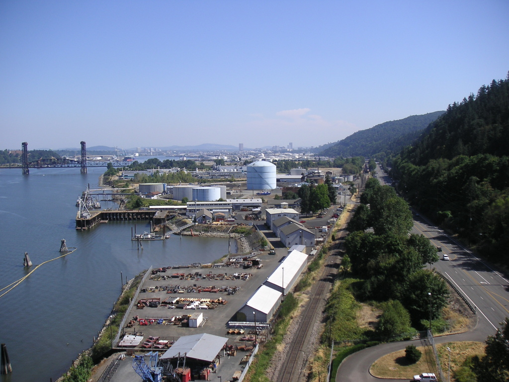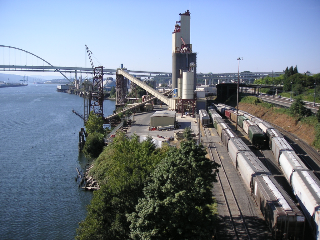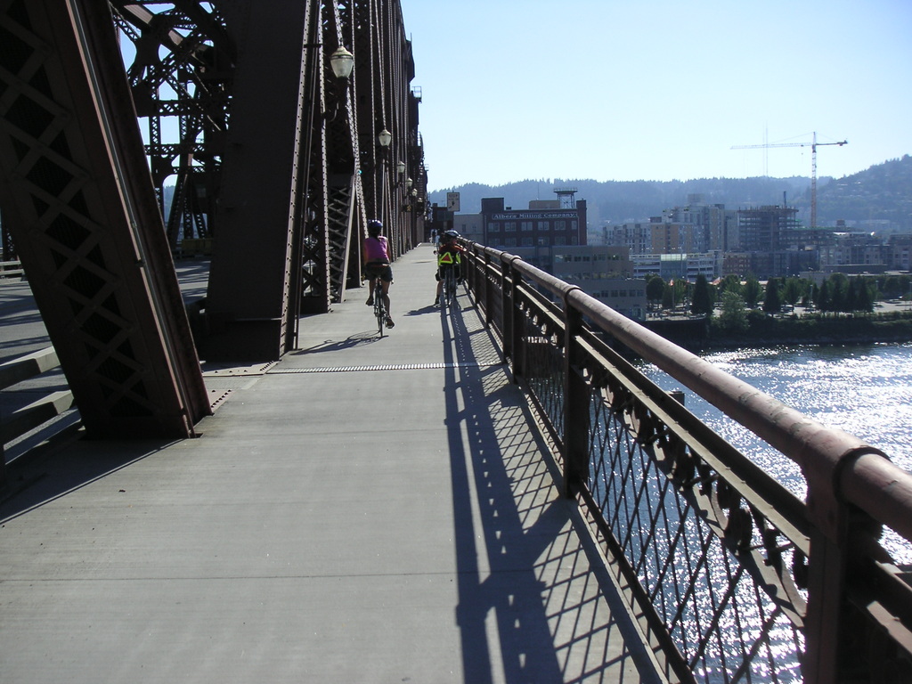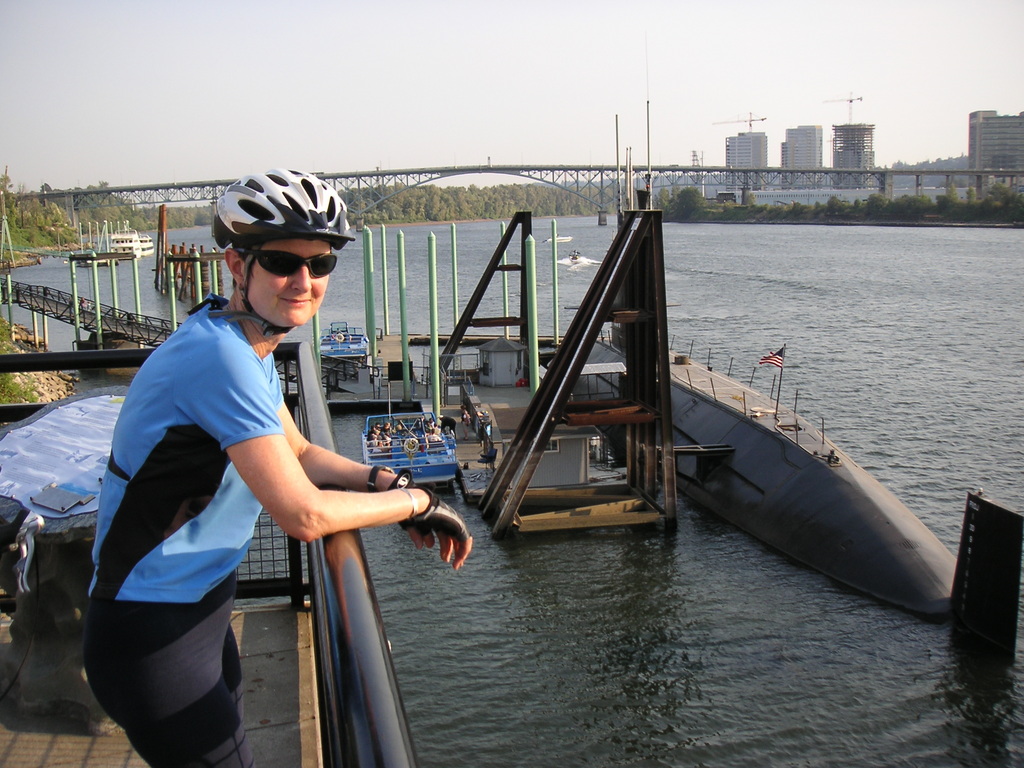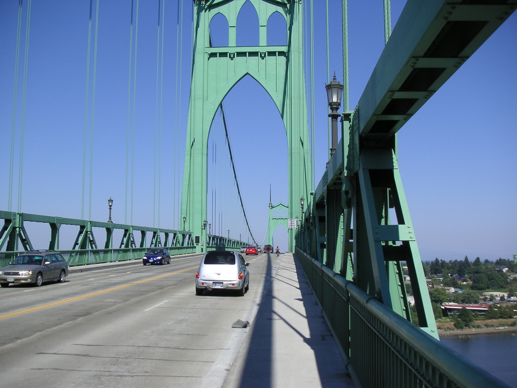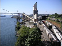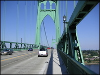 We continued on Skyline, past Germantown Road and busy Cornelius Pass Road. We climbed a little further and decided to take the shorter loop, so we headed back to Germantown Road and headed downhill toward the river. It was a thrilling descent, with many switchbacks where it was easy to drift into the oncoming lane. At the bottom of the hill we rode a short distance on Route 30 then crossed the Willamette on the St. Johns bridge. There was no shoulder but traffic was light and we made it across OK. From the bridge we could see the hundreds of cars waiting to be shipped to various parts of the West. Portland handles the most automobiles of any port in the West, fourth in the nation.