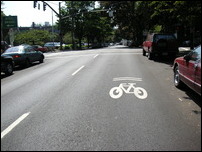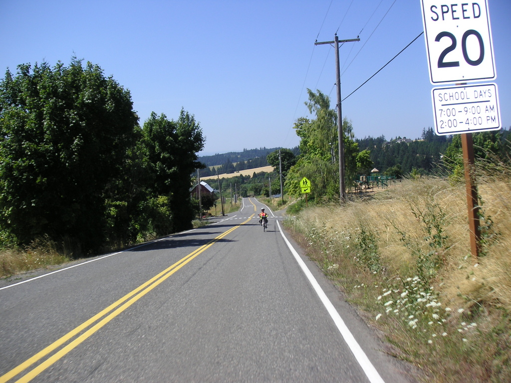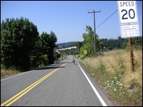 We decided to head west to check out the roads that lead into the surrounding hills. As with the Springwater ride, the route we followed was suggested by the site Oregon.com, which has a list of five bike rides in and around Portland. Using the directions and the bike map we were able to make our way to NW Cornell Rd that has a good shoulder for cyclists. There are two narrow tunnels on this road, but an ingenious solution was built to accommodate cyclists and pedestrians; trails are built into the hillside to skirt around the tunnels.