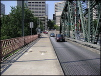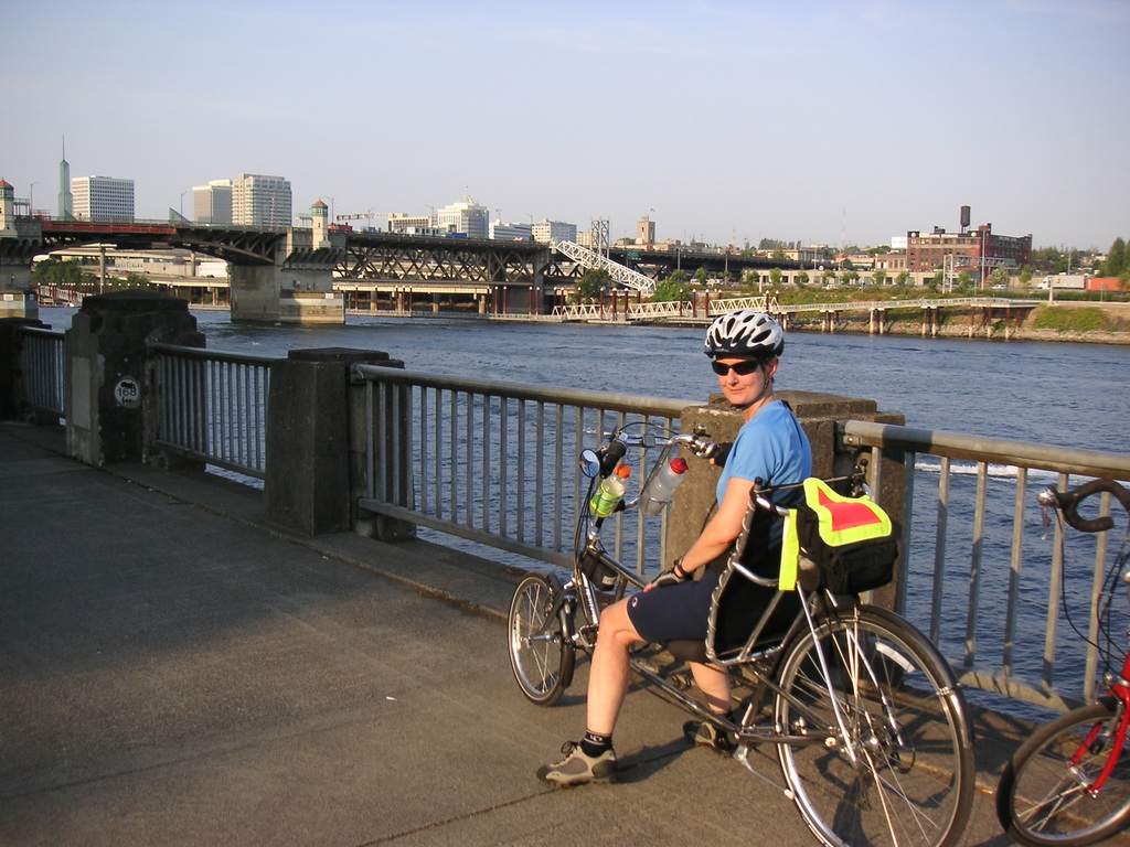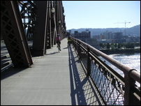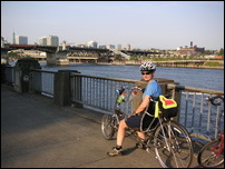 We continued following the map to the Broadway Bridge which, like all of the other downtown bridges, has separate bike trails, usually one in each direction. We were tired by the time we reached the Days Inn. After showers the search for dinner began. The Bicycle Adventures literature had suggested Jake's Famous Crawfish restaurant. The food was good and we were surrounded by old oil paintings of Oregon scenes. The restaurant has been in Portland for over 100 years and many famous people have dined there. Kerie was more than a little disappointed when I told her that McCormick and Schmicks purchased the restaurant in the 70's.