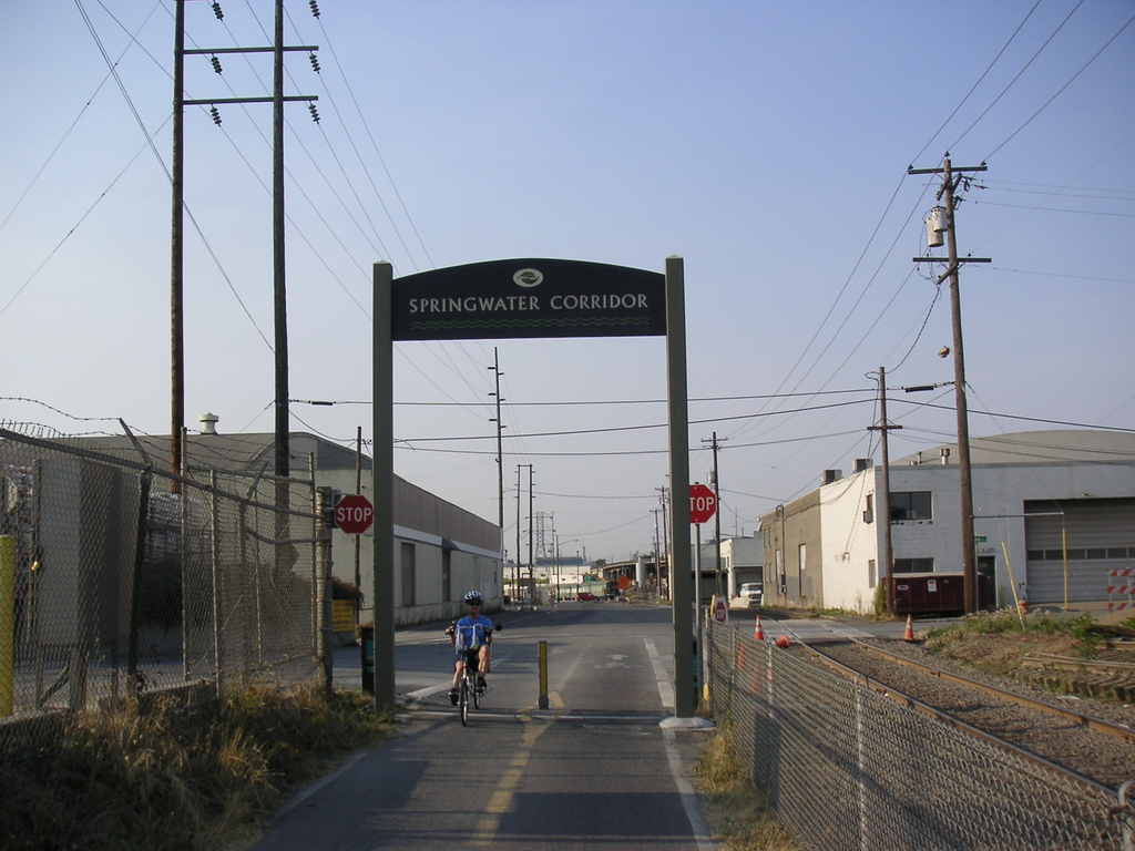 | Entrance to Springwater Trail. | View from East Bank Esplanade trail. | View from West Bank Esplanade trail. |