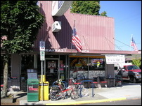 Once we got checked in and picked up Kerie's bike that was shipped to the motel (she uses a company called Sports Express which offers door-to-door service), we collapsed for a while before heading out for dinner. We stumbled upon Higgins Restaurant and Bar. Recommended by a fellow cyclist on the Crater Lake tour, we had tried to eat there on our previous trip but could not get in. It is a good restaurant, although the dishes are a bit rich, with too much garlic and butter. Food tasted great at first but was very heavy. We wandered around the neighborhood afterwards, bought some drinks for the next couple of days, and headed back to the motel.