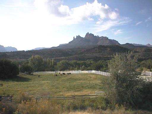 We had a late start, discovering one last flat tire that developed overnight. Kerie, Christina and I brought up the rear and I tried not to stop too often to take photos since we needed to get to St. George and pack the van for the ride to Las Vegas. Some people had flights later that afternoon. The road leading away from Zion, Route 9, was relatively lush and scenic, with a number of farms located in Springdale and Rockville.