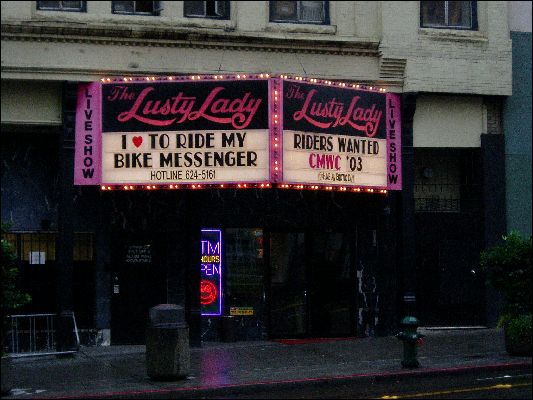 We then checked out the Seattle Art Museum, with the Hammering Man located out front. That weekend the cycle messenger world championships were being held in town, and on the way to the museum we caught sight of an interesting sign on one of the exotic dancer places. ![]()