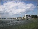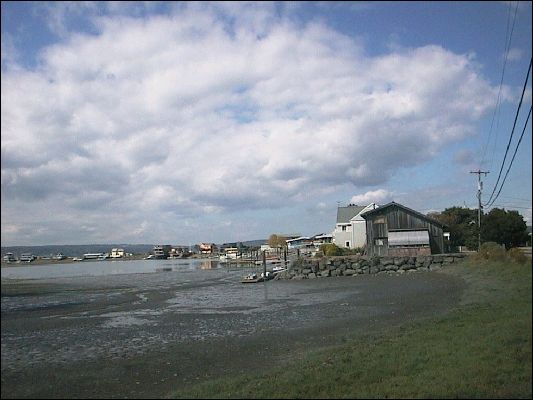| Bainbridge Island shoreline | Cyclists leaving ferry | Bike barn on Bainbridge Island |