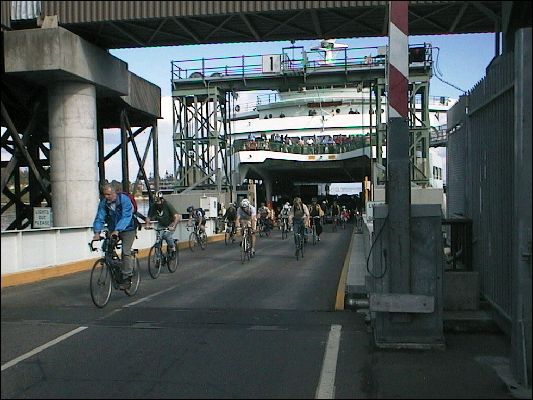 In Seattle we stayed at the Days Inn near the downtown area. It's the most reasonable motel ($85/night) and appeared to be the kind of place that would not care if we brought our bikes into the room (i.e. it looks like a dump). We flew into SeaTac airport, which is about 15 miles south of the city. We took the Gray Line Airport Express. The basic charge was $8.50/person, but since our motel was not on the official list, we had to pay $2.50 extra for the transfer van.