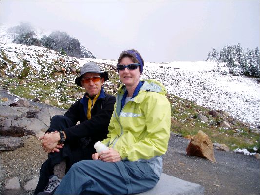 This was a layover day. We've learned not to call them “rest” days since rest is usually not on the agenda. We skipped the Grove of the Patriarchs hike lead by Mark and Kate. We did pack a lunch with everyone else, heading off to the Visitor's Center to check out the exhibits. There's a great observation deck on the top floor of the center with free telescopes. The deck offers good views of the mountain, including Camp Muir where those who are hoping to reach the summit spend the first night before heading out for the summit very early the next day.