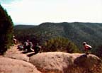 Today was a beautiful ride from Pinos Altos to Gila Hot Springs. It was cold again when we started with a 2 mile downhill, with people stopping to put on additonal clothes. Then we climbed for the next 6 or so miles to an elevation of around 7200 feet, followed by a wonderful descent to the route 35/15 intersection along the Sapillo River. It was a treat to be riding through pine forest on a cool fall day, with the few aspen starting to change to yellow, and the strong smell of cedar. I stopped for about 20 minutes just savoring the smells and sounds of the forest, then eating most of my lunch. A little further ahead I met up with Todd and Suzanne who were sitting on a ridge with a nearly 360 degree view of the surrounding Gila Wilderness, the first area to be designated a wilderness area. Later others joined us, Jimmy documenting the event as usual.