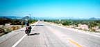 From Wickenburg I rode alone for the next 40 miles on a very boring and dangerous stretch of US 60 into Phoenix. There was a wide shoulder, but I rode close to the white line to avoid all the broken glass and blown tires. A couple of semis passed very close, and most of the vehicles were going 65-70 mph. I made good time because the road was flat and the headwind had stopped. The mountains on the opposite side of Phoenix were barely visible through the haze that hangs over the city. I was appreciating the past week of fresh air and clear skies.